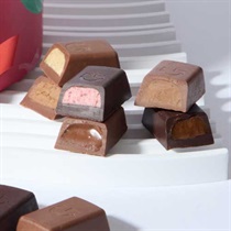 フェアトレード認証カカオを使用した一口サイズのバーチョコレート。