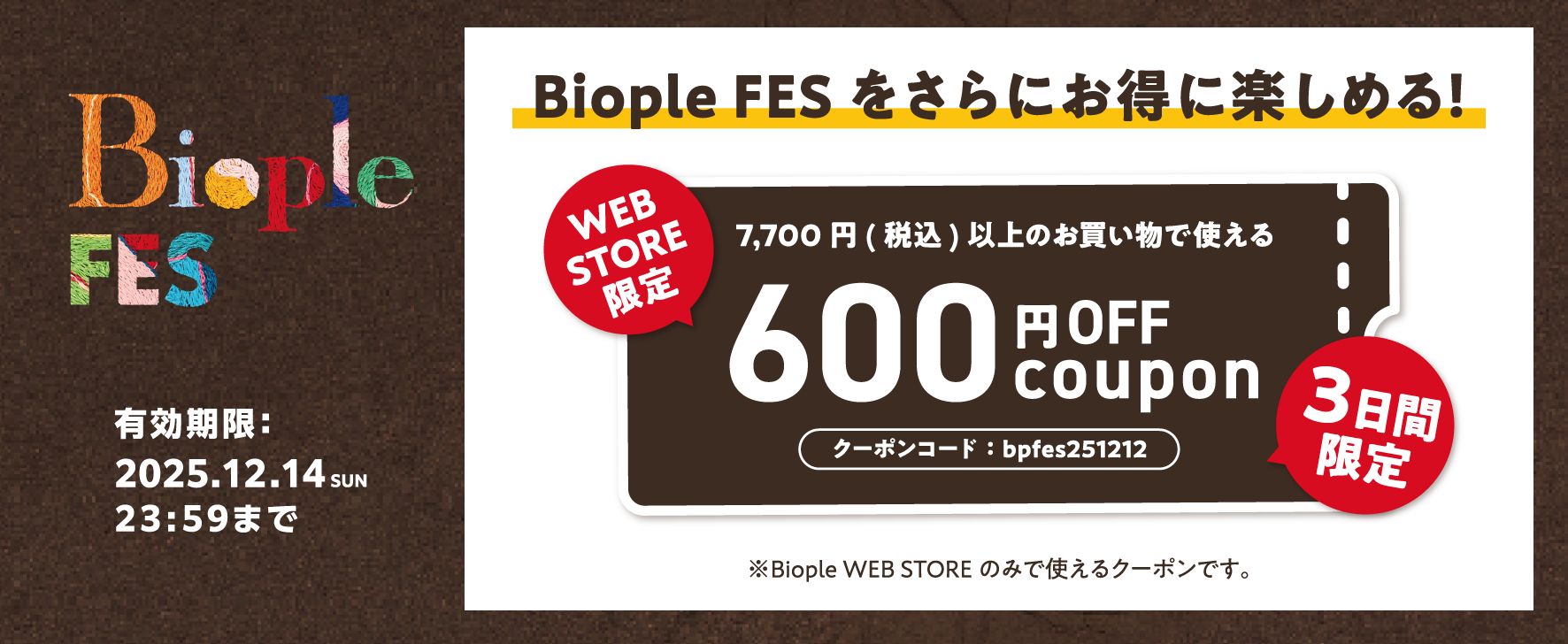 Biople WEB STOREでのみご使用いただけます。 ※MA CARD会員様限定のためログイン後ご使用いただけます。 ※クーポンはカート画面でお選びいただけます。 ※他のクーポンとの併用は出来かねます。 ※対象商品は予告なく変更となる場合がございます。